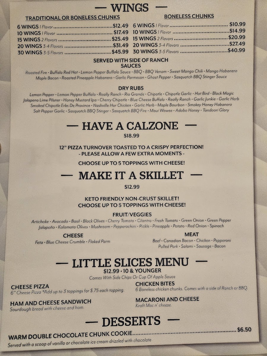In addition to the classic toppings, Slices enhances your experience with unique sauces like Black Garlic Ranch and Roasted Pineapple Habanero, each priced at just $0.75. The menu also boasts fresh salads, including a robust Chef Salad that perfectly complements any meal.